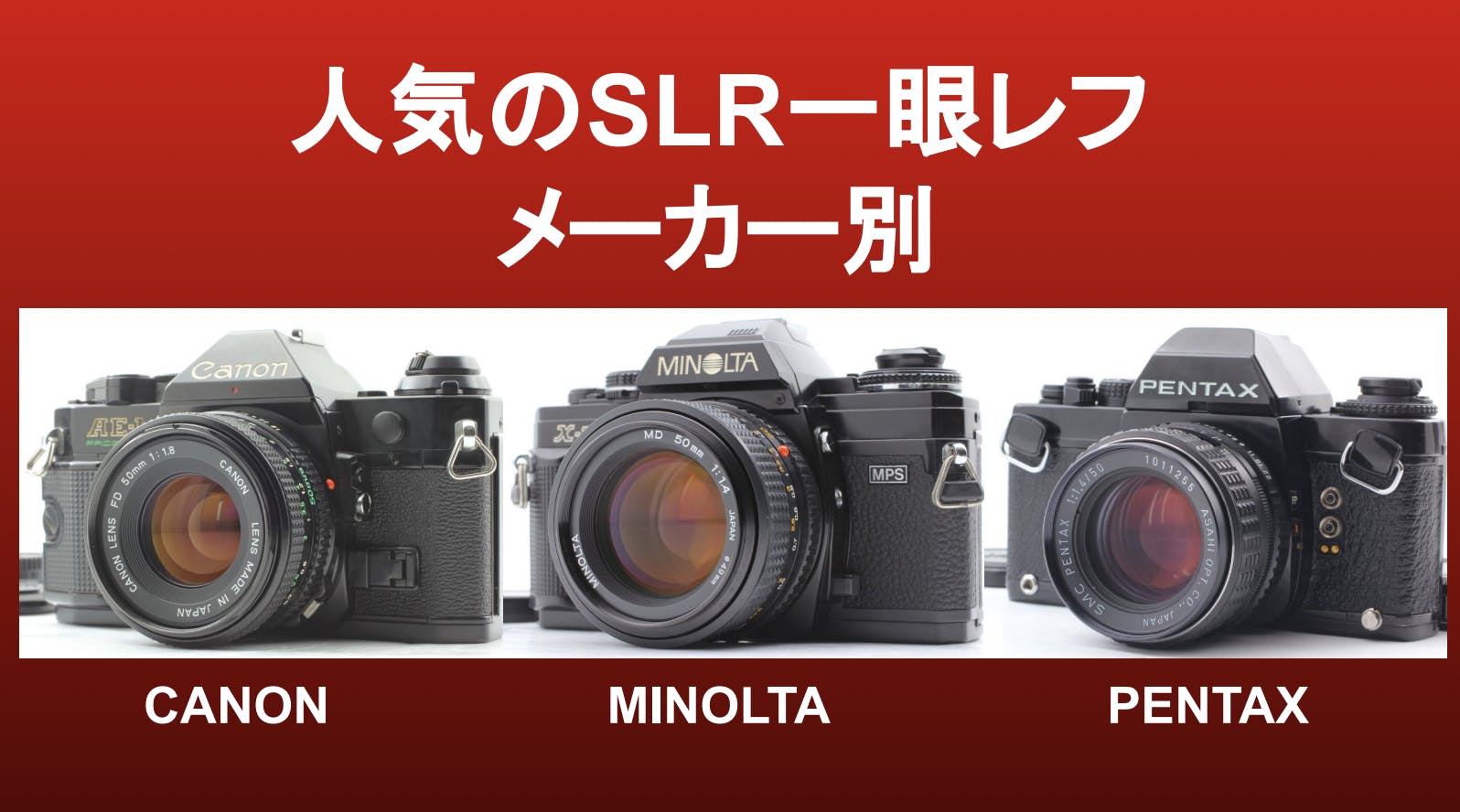 王道カメラを知ることが、爆発的な利益を生み出します。「Canon Minolota Pentax」は避けては通れません!