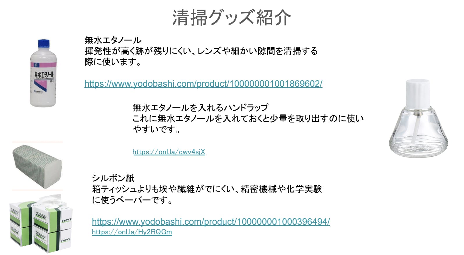 おすすめ清掃用品と検品用電池※4ページ